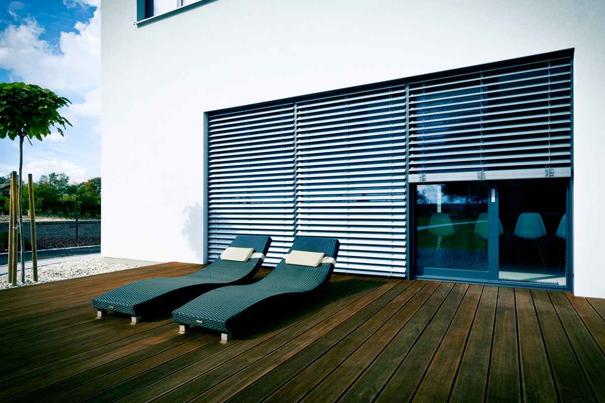 Żaluzje fasadowe Rabka Tworzą najlepszą ochronę przed promieniowaniem słonecznym budynków mieszkalnych, biurowych, jak również użyteczności publicznej. Lamele Z90 i C80 podtynkowe.